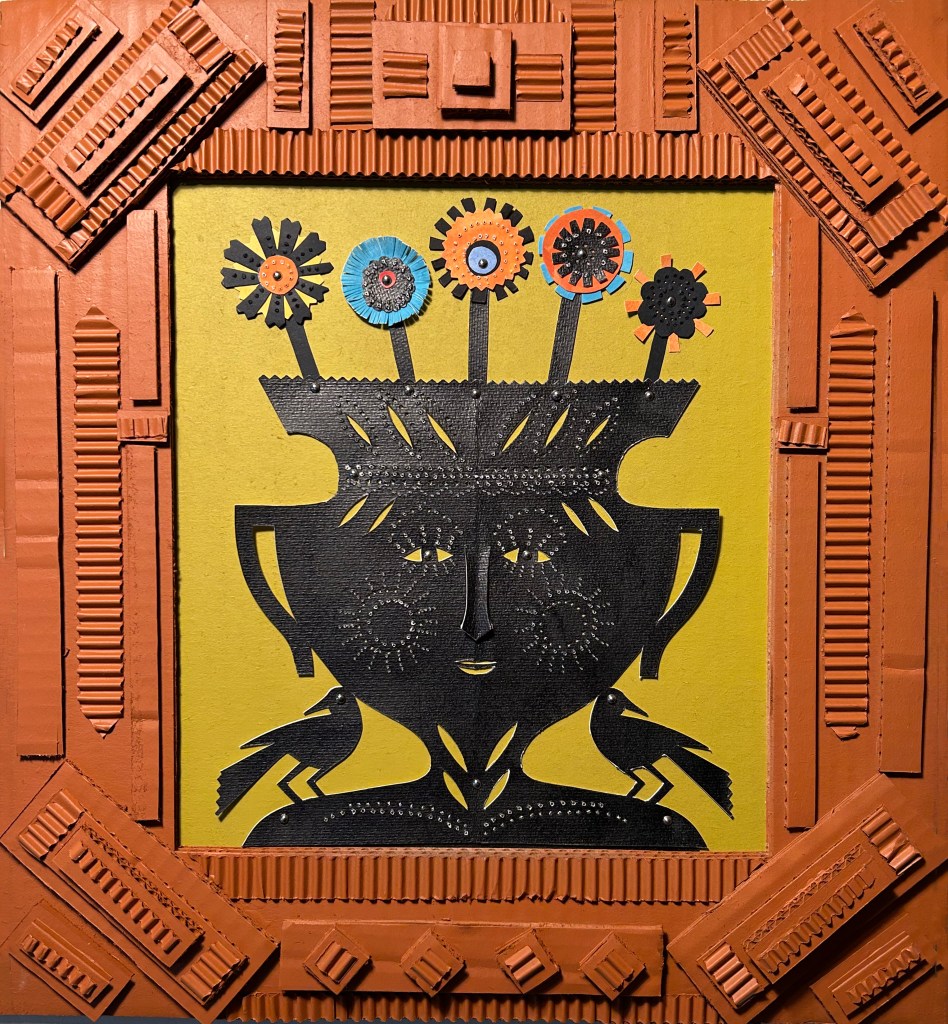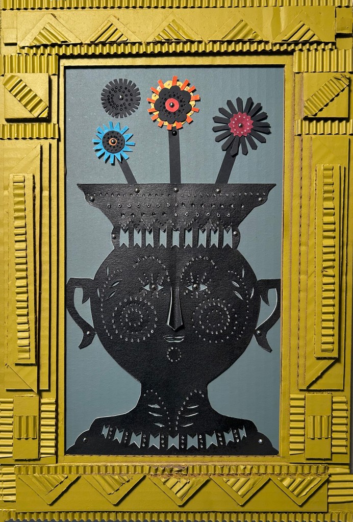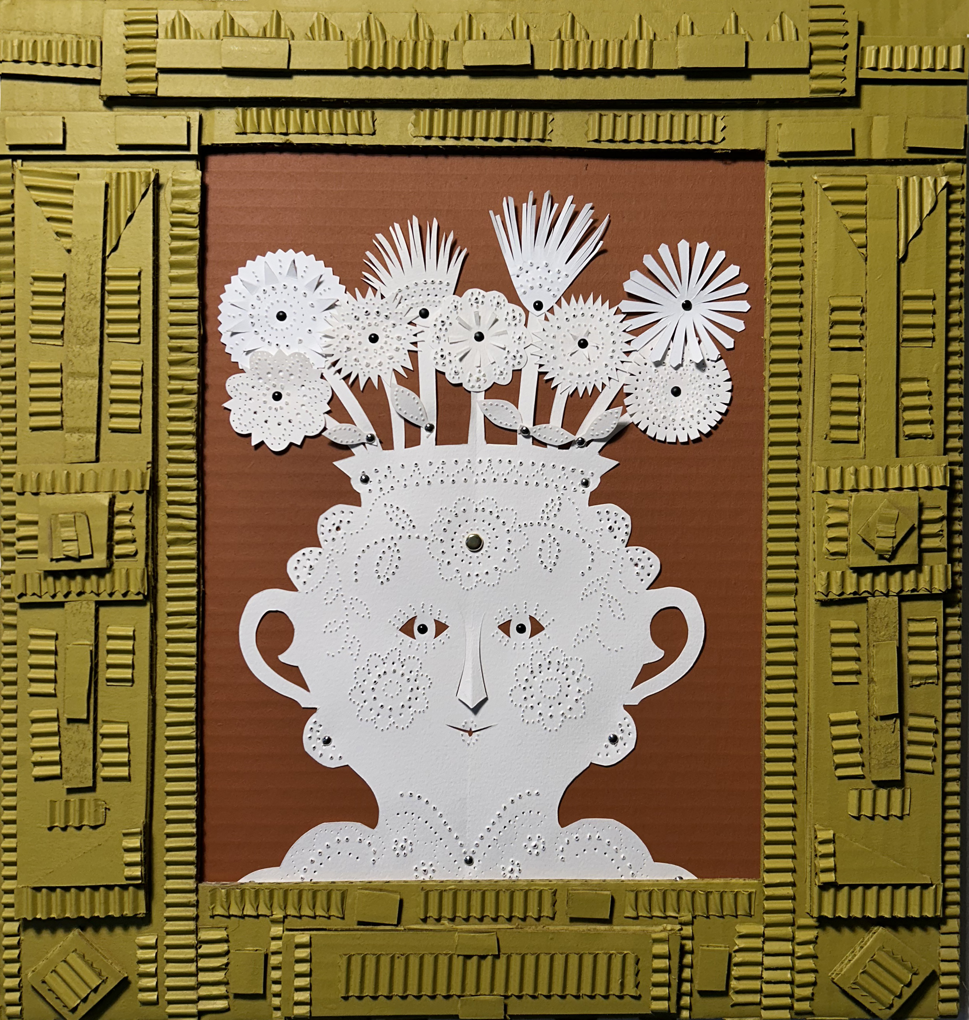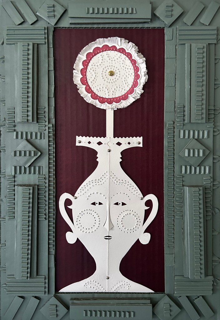 Marjorie, cut paper and cardboard assemblage, 18.25″H x 17″W