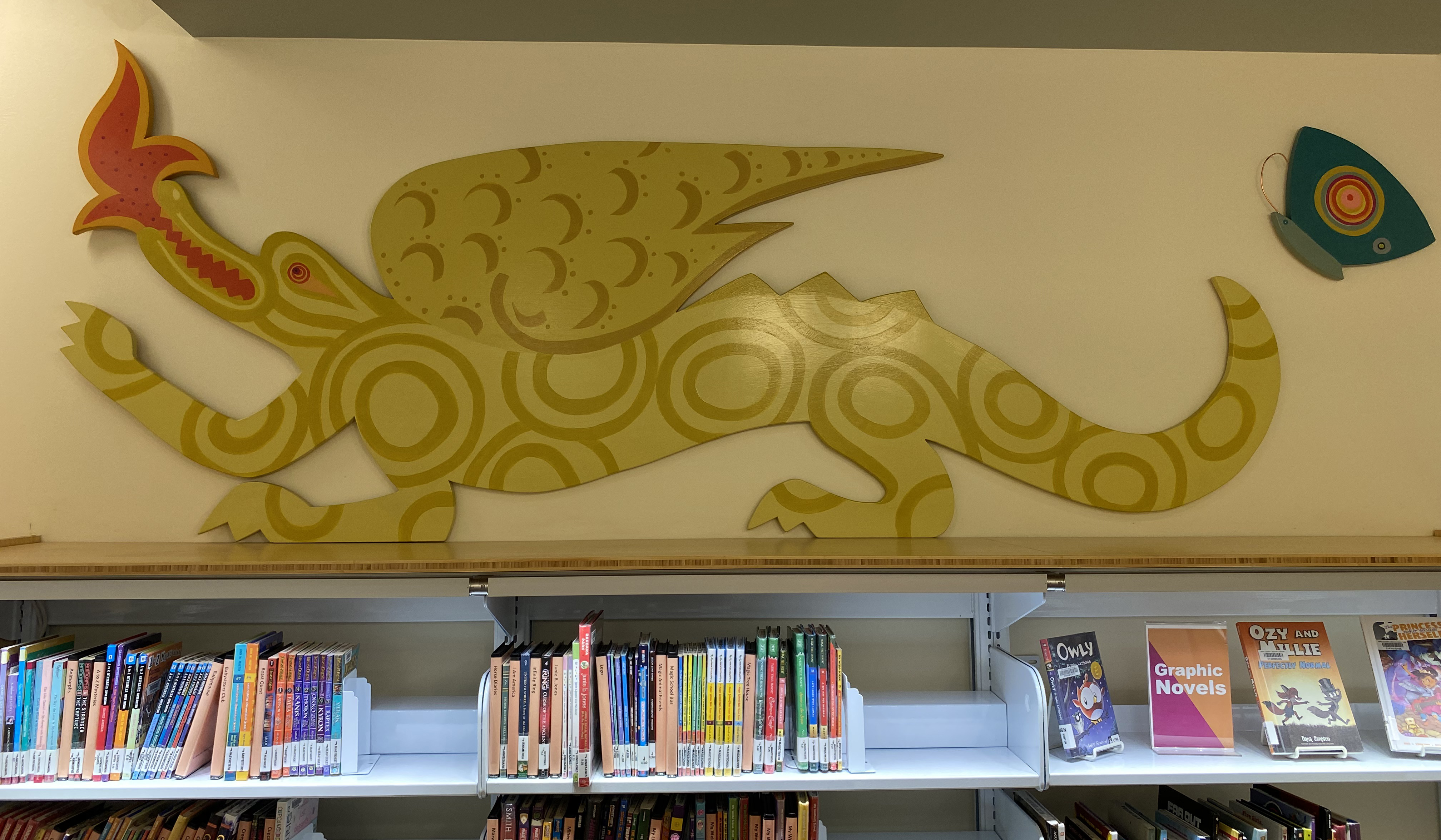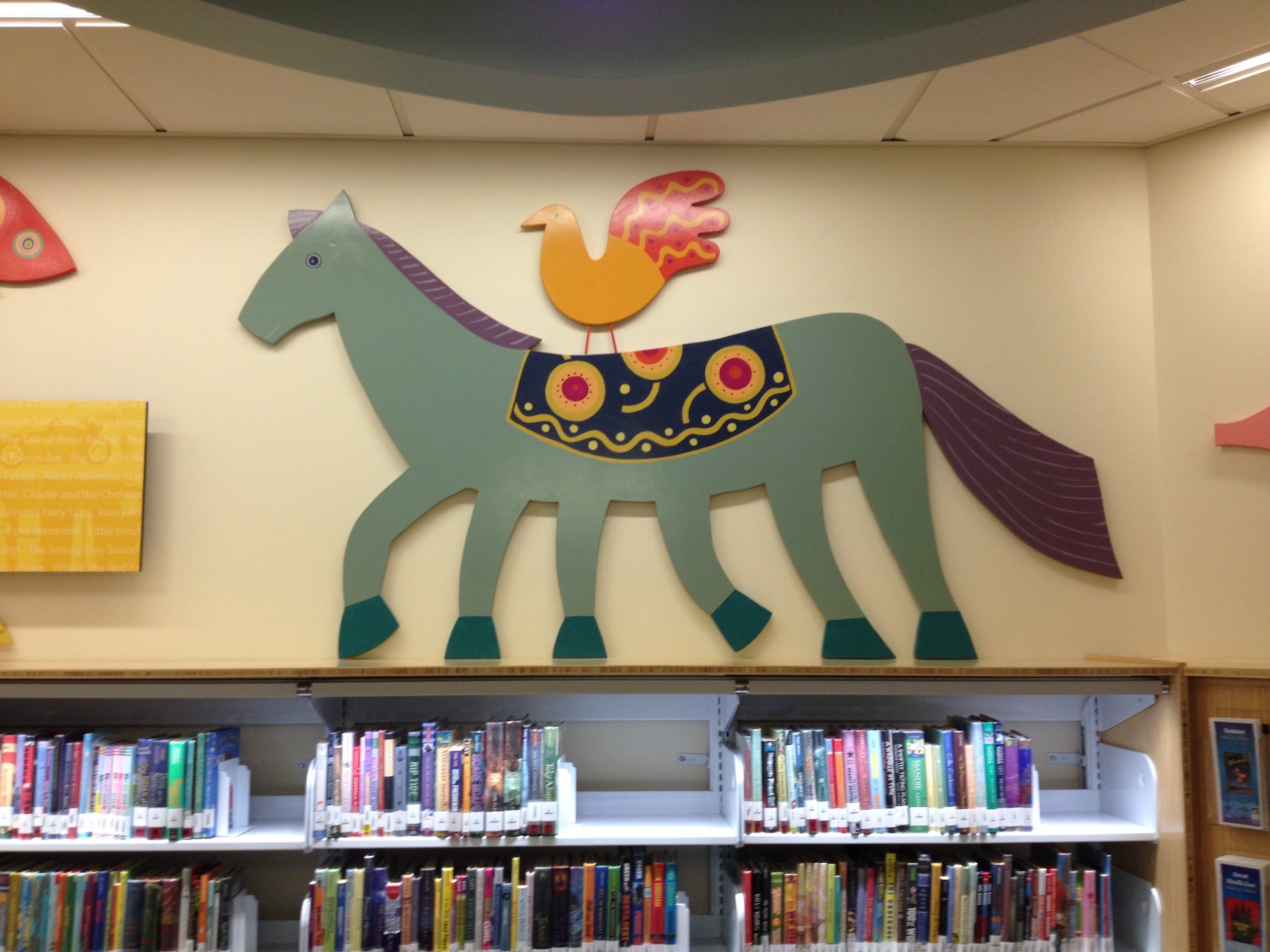 I made a parade of wooden animals for the children’s section of the Lake Forest Public Library in 2011. It was hard to photograph because it is so spread out. Here are a few details.